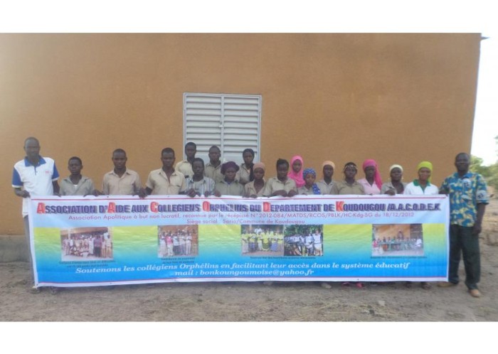 De organisatie A.A.C.O.DE.K. (Association d’Aides aux Collégiens orphelins du département de Koudougou) werd begin 2013 opgericht. Deze organisatie is actief in de dorpen Villy en Saria (gelegen op +/-30 km van Koudougou, de derde grootste stad van Burkina Faso). Dit kleinschalig project heeft volgende doelen:
