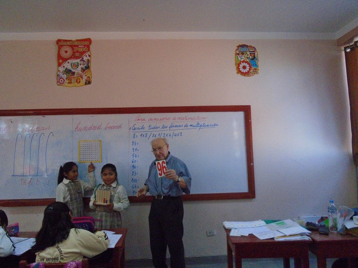 We kunnen een beroep doen op ervaringen van vorig jaar. Er is nood aan sterke differentiatie, uitdagend en inzicht bevorderend in plaats van reproducerend onderwijs. We kiezen voor hoofdrekenen: inzicht in de getallenstructuur ( 58 = 50 + 8) en relaties tussen getallen bv. 87 + 99 = 87 + 100 – 1. Honderd bijtellen is gemakkelijker dan 99 bijvoegen en 99 ligt dicht bij 100. Vormende oefeningen. Naast dergelijke oefeningen in rekenvoordelen is er ook aandacht voor spelend leren, creatief handwerk, zang… Er worden waardevolle didactische media voor onderwijs in wiskunde, Engels, sociale en manuele vaardigheden, zang, beeldend werken… en leren denken en structureren aangeschaft. Didactische media, gekocht in de stad Arequipa, worden 120 km verder gebracht naar de projectplaats. Elk van de ongeveer 160 jongeren krijgt twee gemaakte, gekopieerde en ingebonden syllabi en schema’s. . Na gebruik blijft alles ter plaatse. Maar dit alles kost veel .