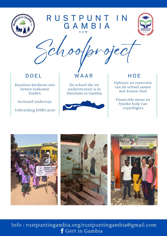 Wij werken daar ter plaatse samen met ENENN-FOOF Excellence - All of us (EFE). Na het bezoeken van verschillende projecten kwam al snel het idee van een eigen project op te starten in Gambia. We hebben daar dan iemand leren kennen, Sira Secka, die al enkele jaren een vzw heeft met de bedoeling van open en gratis onderwijs te organiseren. Ze hebben heel goede ideeën, een hele ploeg vrijwilligers, maar ze hebben weinig middelen.