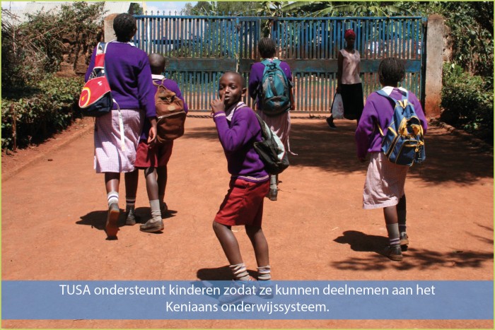 TUSA geeft prioriteit aan het onderwijs en vorming van kinderen en jongeren. Kinderen worden ondersteund om, zodra ze daarvoor de leeftijd hebben, deel te nemen aan het Keniaans onderwijssysteem. Speciale aandacht gaat naar de kinderen van nieuw toegekomen gezinnen.