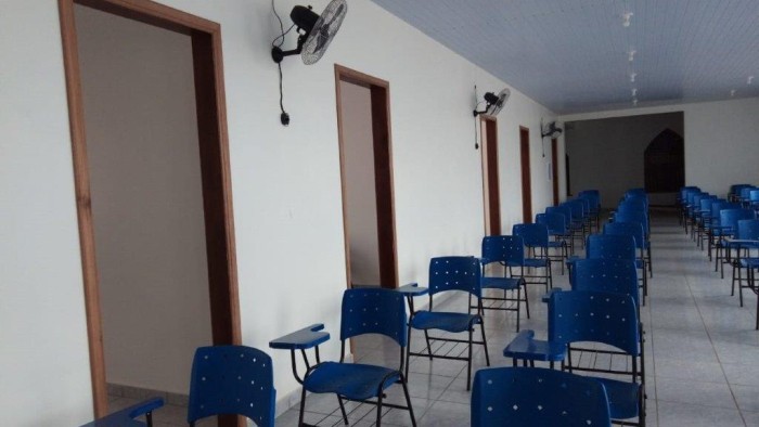 Plaatsen van airco’s en een houten schuifdeur voor het auditorium van het vormingscentrum van Itacoatiara.